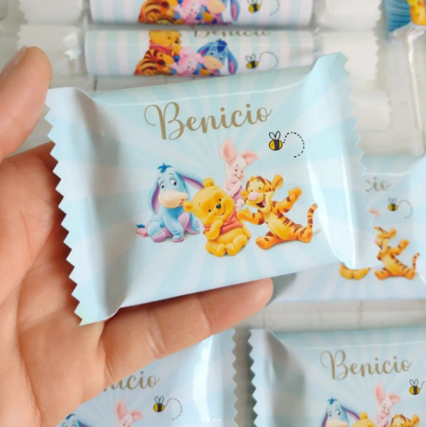 Todo totalmente personalizados Candy con envolturas completas con la temática elegida. Realizado con papeles de excelente Calidad fotográfica. Golosinas son de primera Marca.