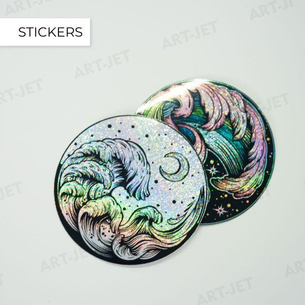 Realizadas en papel rígido brillante adhesivo. 100% personalizadas.