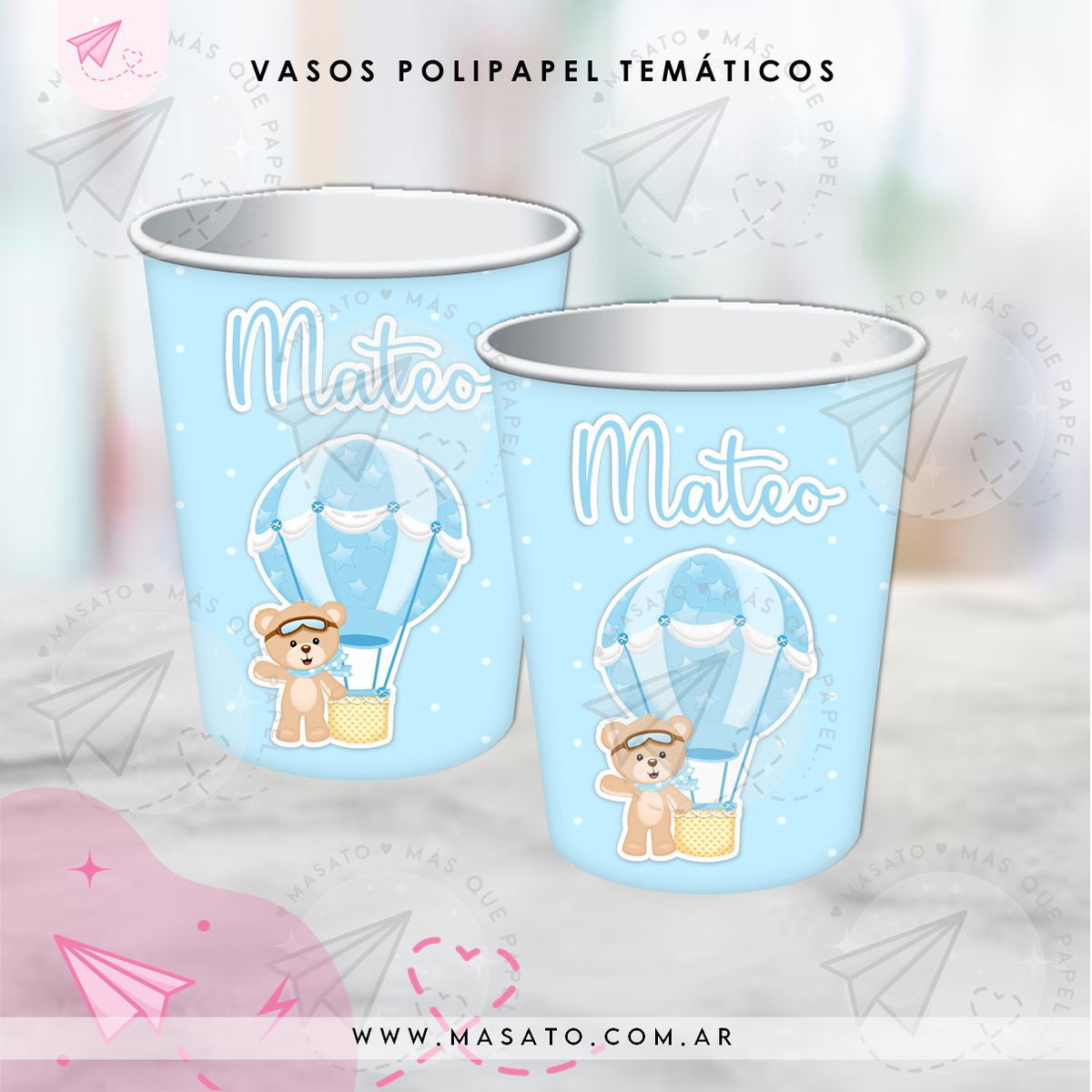 Vaso temático de poli papel personalizado con nombre y personaje. Se adapta a todo tipo de evento.