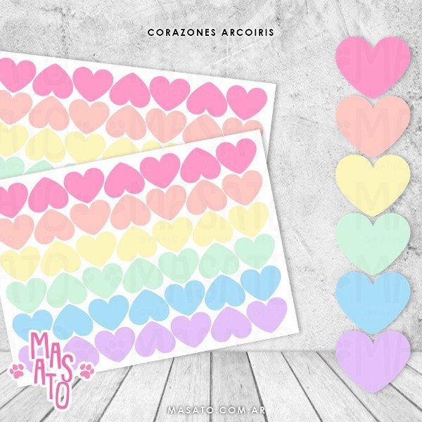 Plancha A4 con 65 stickers de 3cm. EN TONOS ARCOIRIS PASTELES
