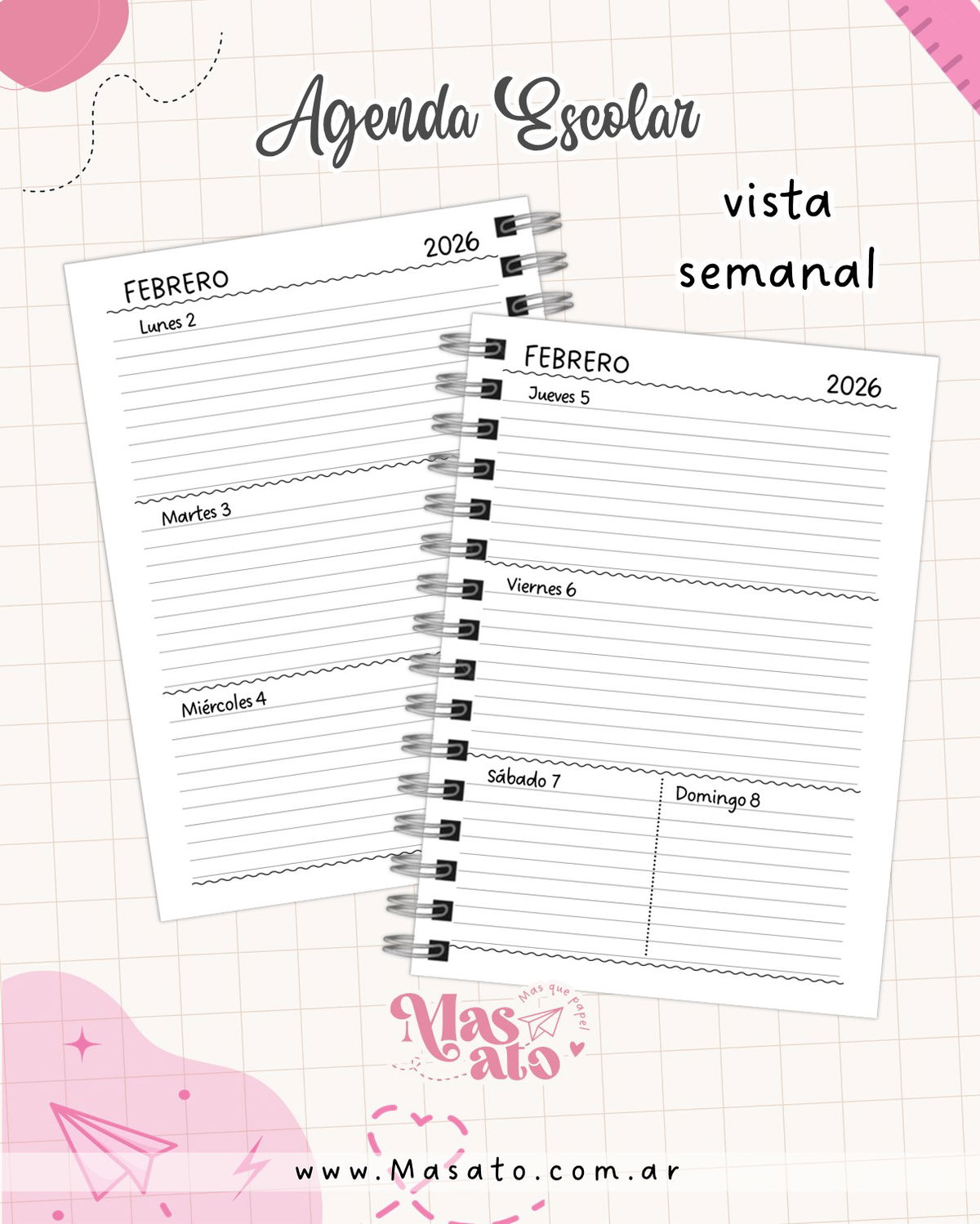 Incluye calendario 2026, planner mensual y vista semanal de febrero a diciembre.