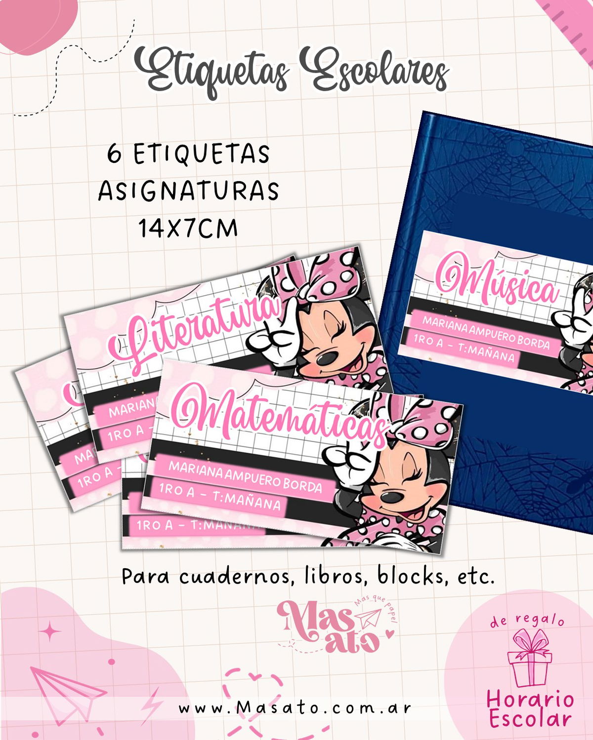Pack de 6 Etiquetas Escolares Grandes (14x7cm) + ¡Horario de Regalo! 🎁