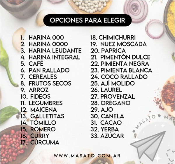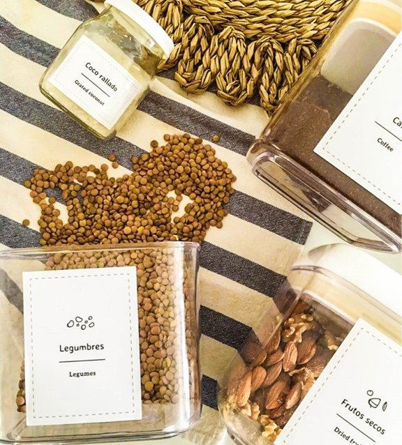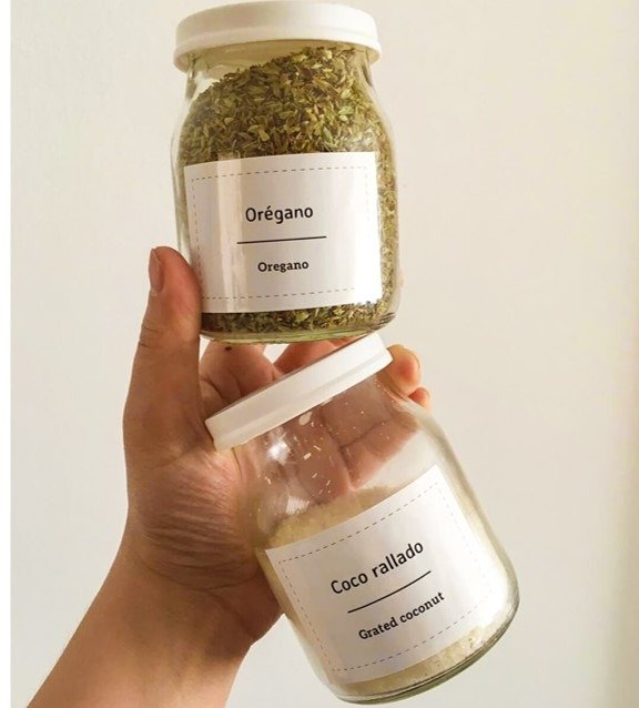 listas para pegar en los frases/recipientes. Orden y diseño en pocos minutos.